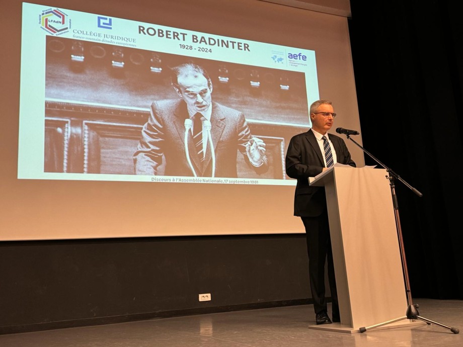 Pe 10 aprilie 2024, la Liceul Francez Anna de Noailles din București a avut loc un eveniment în semn de omagiu pentru Robert Badinter, în urma recentei sale dispariții. La eveniment au participat Excelența Sa domnul Nicolas Warnery, ambasadorul Franței în România, și domnul Michaël Koriche, atașat de cooperare educațională la Institutul Francez din București. Elevi de la Liceu și studenți de la Colegiul juridic (Ana-Maria Vodă (L1), Matei Trandafir (L2) și Ana Popescu (M1)) au susținut prezentări despre viața și activitatea lui Robert Badinter, în special despre contribuția sa la abolirea pedepsei cu moartea în Franța, despre luptele sale pentru menținerea păcii în Europa și despre contribuția sa la reconstrucția statului de drept în România prin participarea sa la elaborarea Constituției României din 1991. Robert Badinter, care a fost profesor emerit la Universitatea Paris 1 Panthéon-Sorbonne, ministru al justiției și președinte al Consiliului Constituțional, a avut o contribuție majoră la elaborarea Constituției României din 1991 și a fost un mare susținător al tranziției României spre democrație și al aderării la Uniunea Europeană. În acest sens, el este părintele spiritual al Colegiului juridic franco-român.