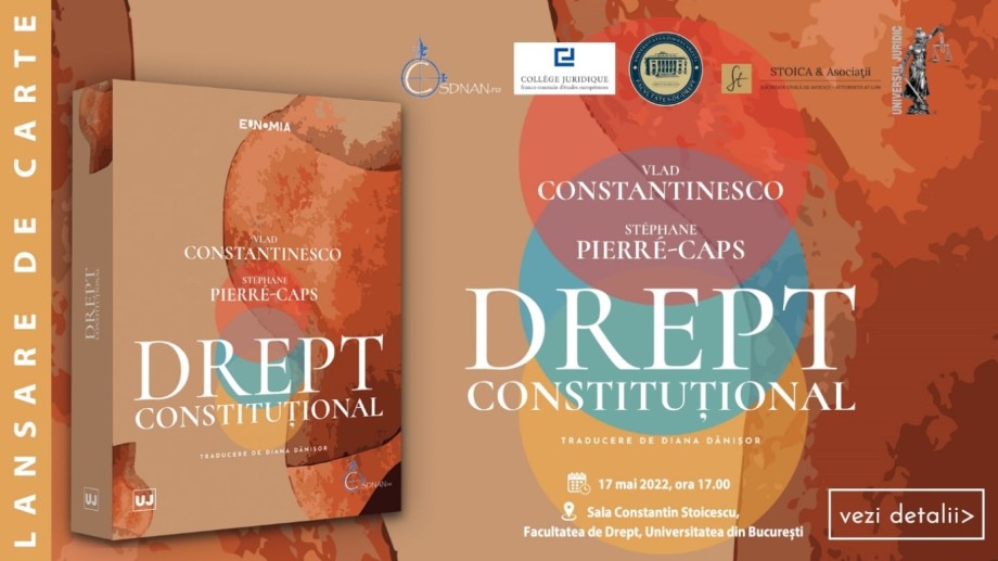 Centrul de Studii de Drept Natural și Analiză Normativă, Colegiul Juridic Franco-Român de Studii Europene, Facultatea de Drept a Universității din București, STOICA & Associés și Editura Universul Juridic au avut onoarea de a organiza evenimentul de lansare a cărții de drept constituțional a profesorilor Vlad Constantinesco și Stéphane Pierré-Caps.