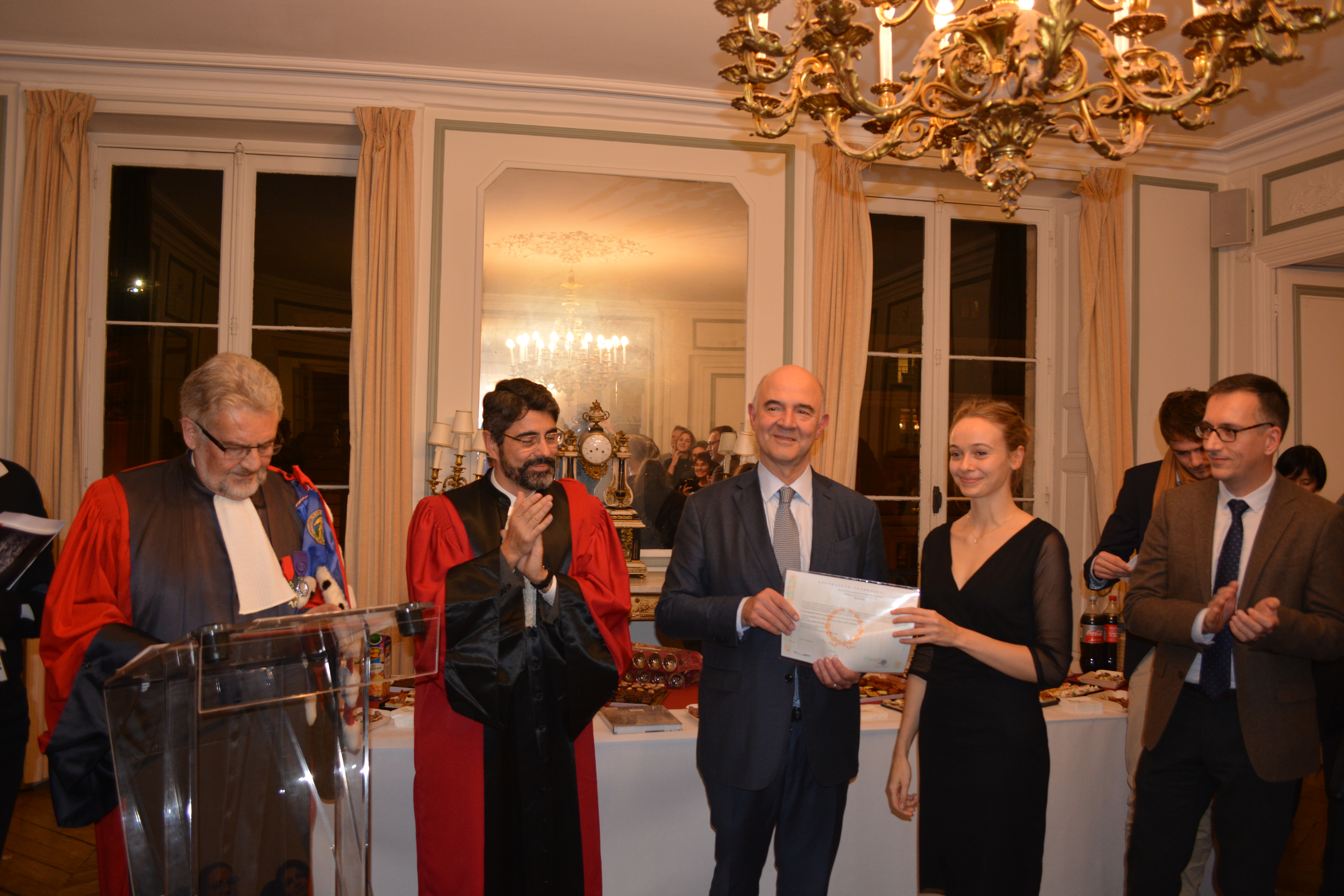 24 novembre 2017 - Le Commissaire européen Pierre Moscovici remet les diplômes de Master 2 aux étudiants du Collège juridique, à la Sorbonne