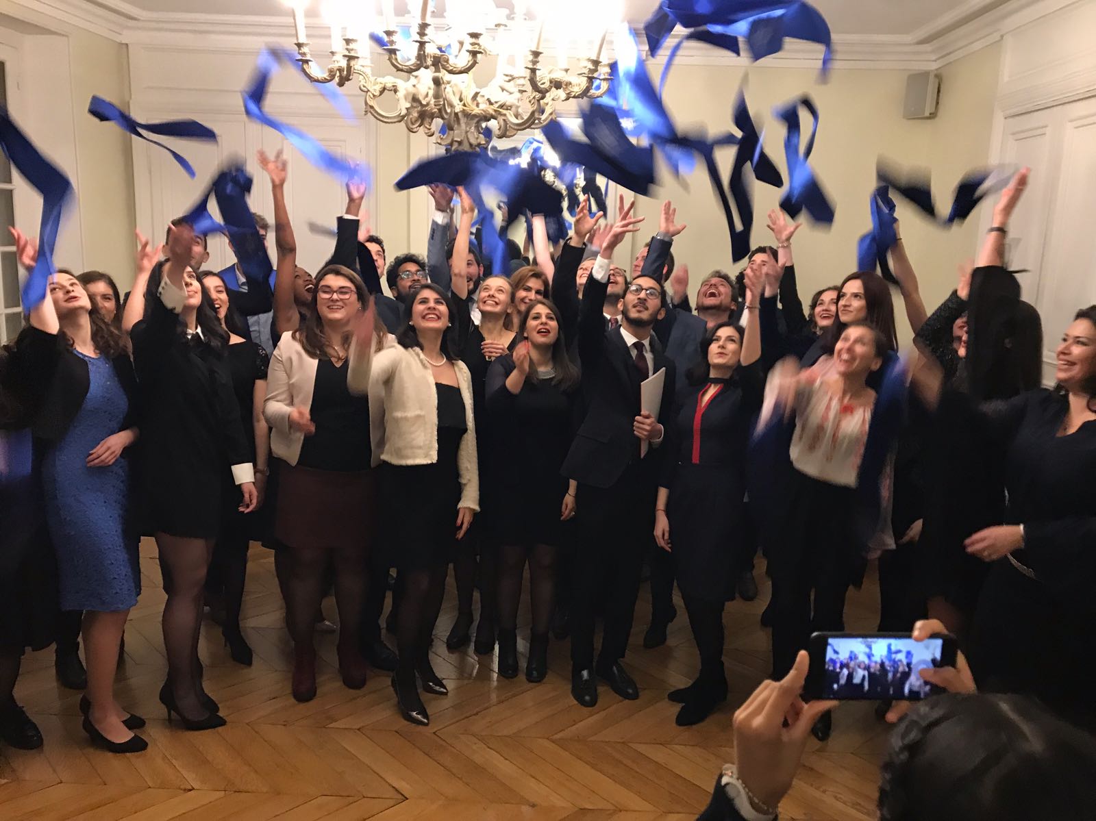 Les diplômés du Master se sont déplacés très nombreux à Paris pour cet événement chaleureux, venant de France, de Roumanie, de Belgique, du Burundi et du Liban, de même que plusieurs enseignants du Master 2, ainsi que le Directeur du Master 2, Monsieur le Professeur Denys Simon, le Directeur de l'Ecole de Droit de la Sorbonne, Monsieur le Professeur François-Guy Trébulle, et le Directeur du département des études internationales, européennes et comparatives, Monsieur le Professeur Hervé Ascensio.