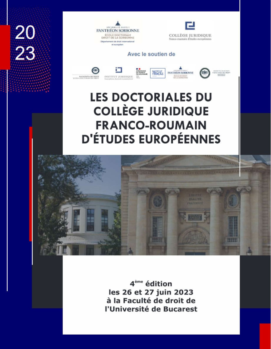 Les 26 et 27 juin s'est tenue la quatrième édition des Doctoriales du Collège juridique franco-roumain d'études européennes. Comme à son habitude, l'évènement a réuni des doctorants francophones de différents pays et leur a permis de participer à des ateliers méthodologiques animés par des professeurs français et roumains ainsi que d'obtenir des retours précieux sur leur projet de thèse.
