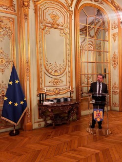 Ca și în anii precedenți, ceremonia de absolvire a programului de Master „Drept și Guvernanță a Afacerilor Internaționale și Europene” al Colegiului Juridic a fost găzduită de Ambasada României în Franța, la Hôtel de Béhague.