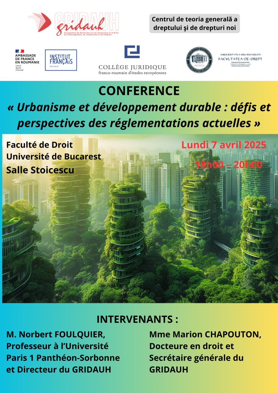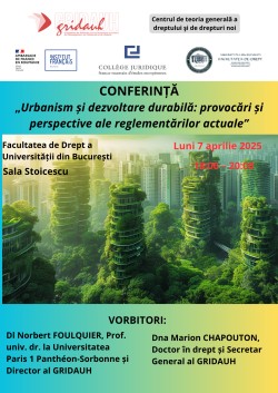 7 aprilie 2025 - Conferința "Urbanism și dezvoltare durabilă: provocări și perspective ale reglementărilor actuale"