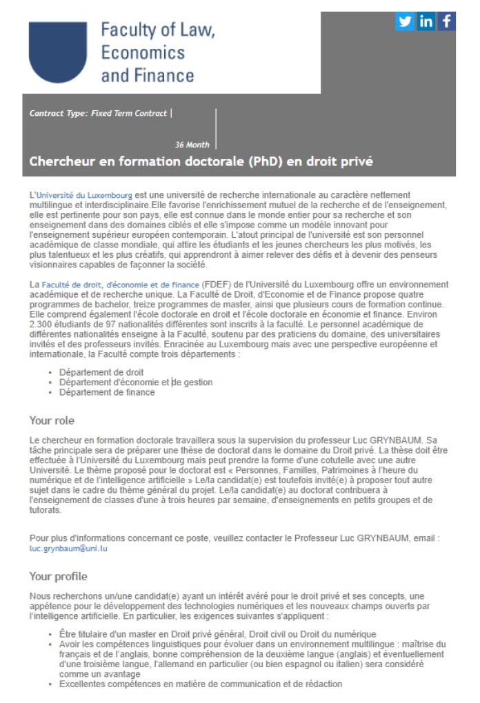 - Opportunité de contrat doctoral à l'Université du Luxembourg